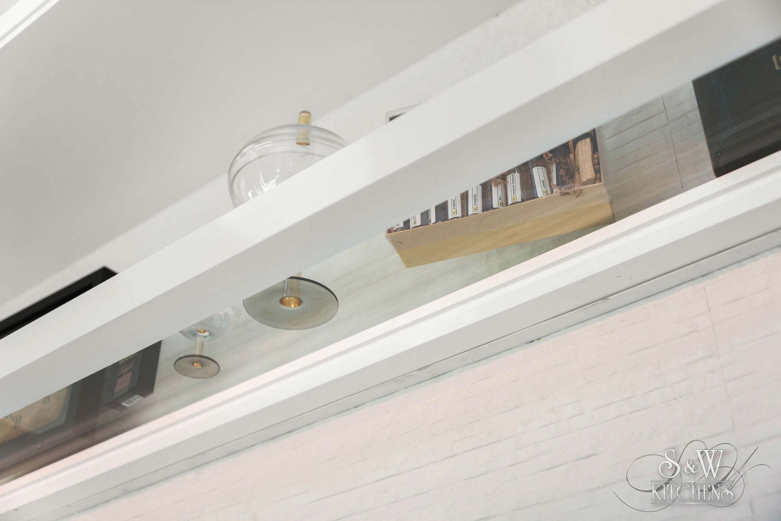 Tarin Walnut with Powder coated metal & Glass Uppers in Pure White