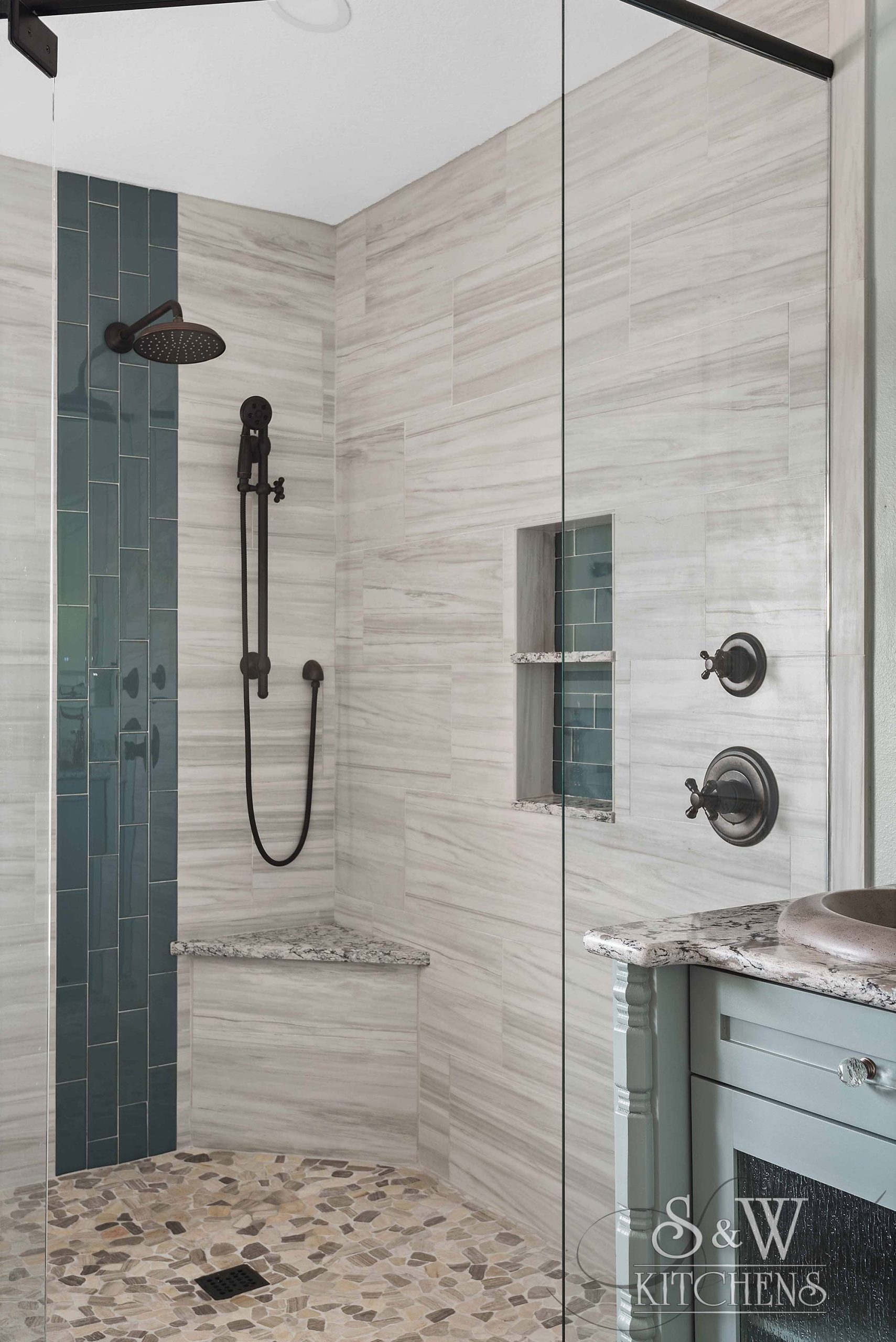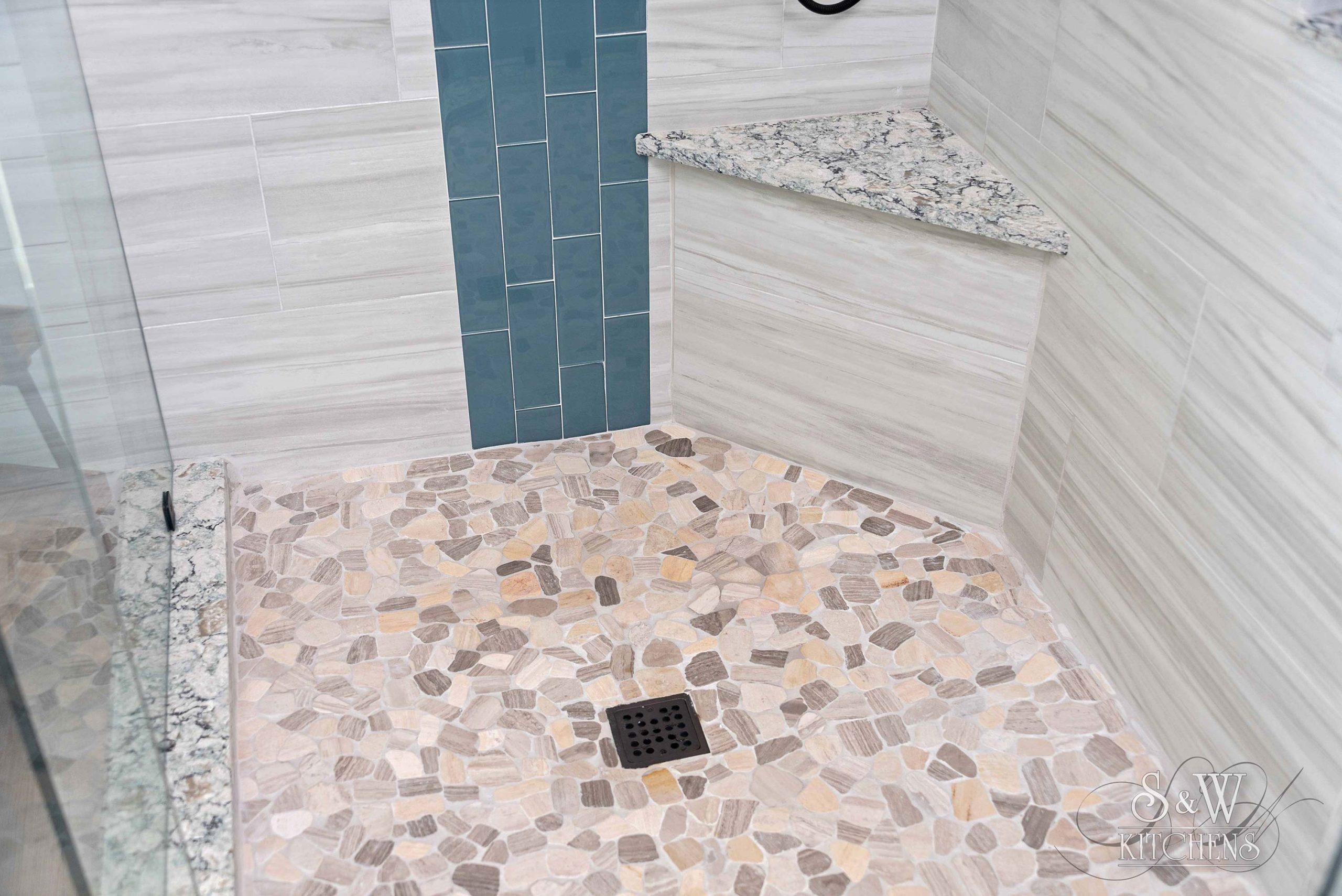 Happy Floors Tacoma Shadow, Valentina White Pebble Mosaic